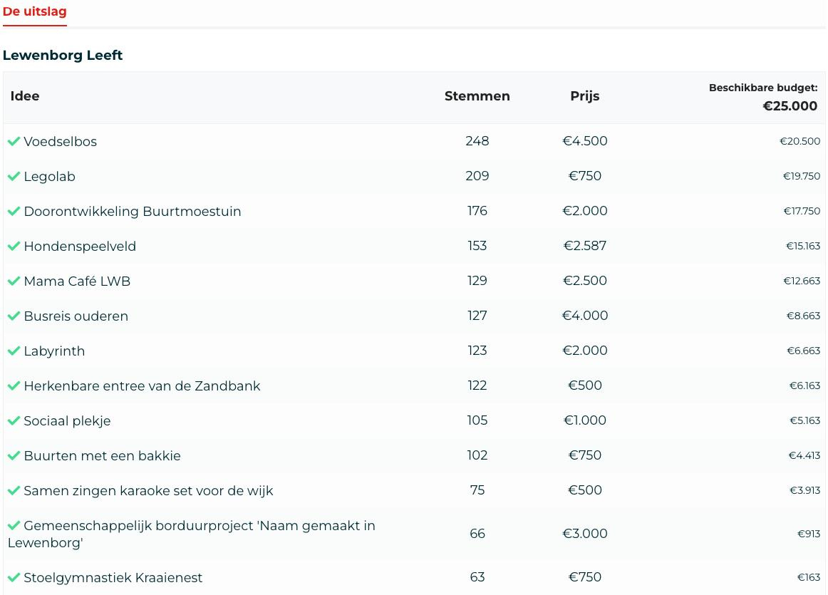 Dit jaar hadden heel veel mensen gestemd, zowel digitaal via de Stem van Groningen als op papier. Vooral de papieren stemmen waren dit jaar in grote aantallen ingeleverd. Het was duidelijk dat de bewoners graag hun stem wilden laten horen.