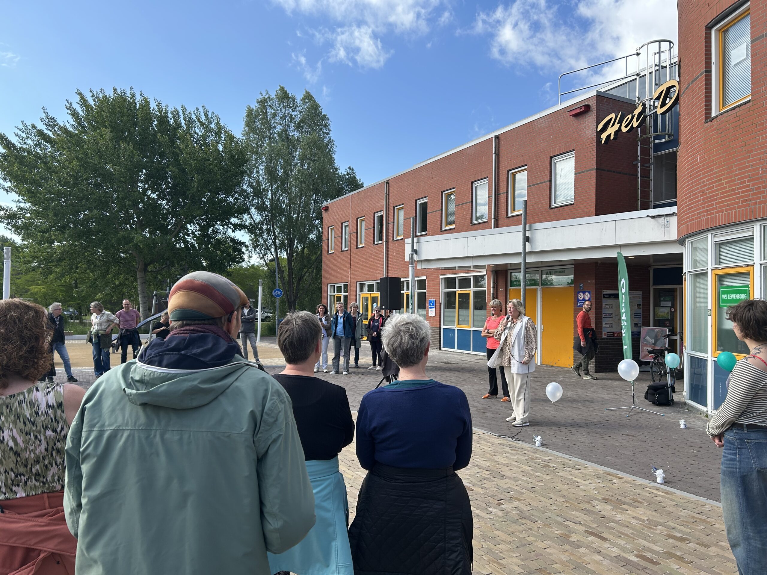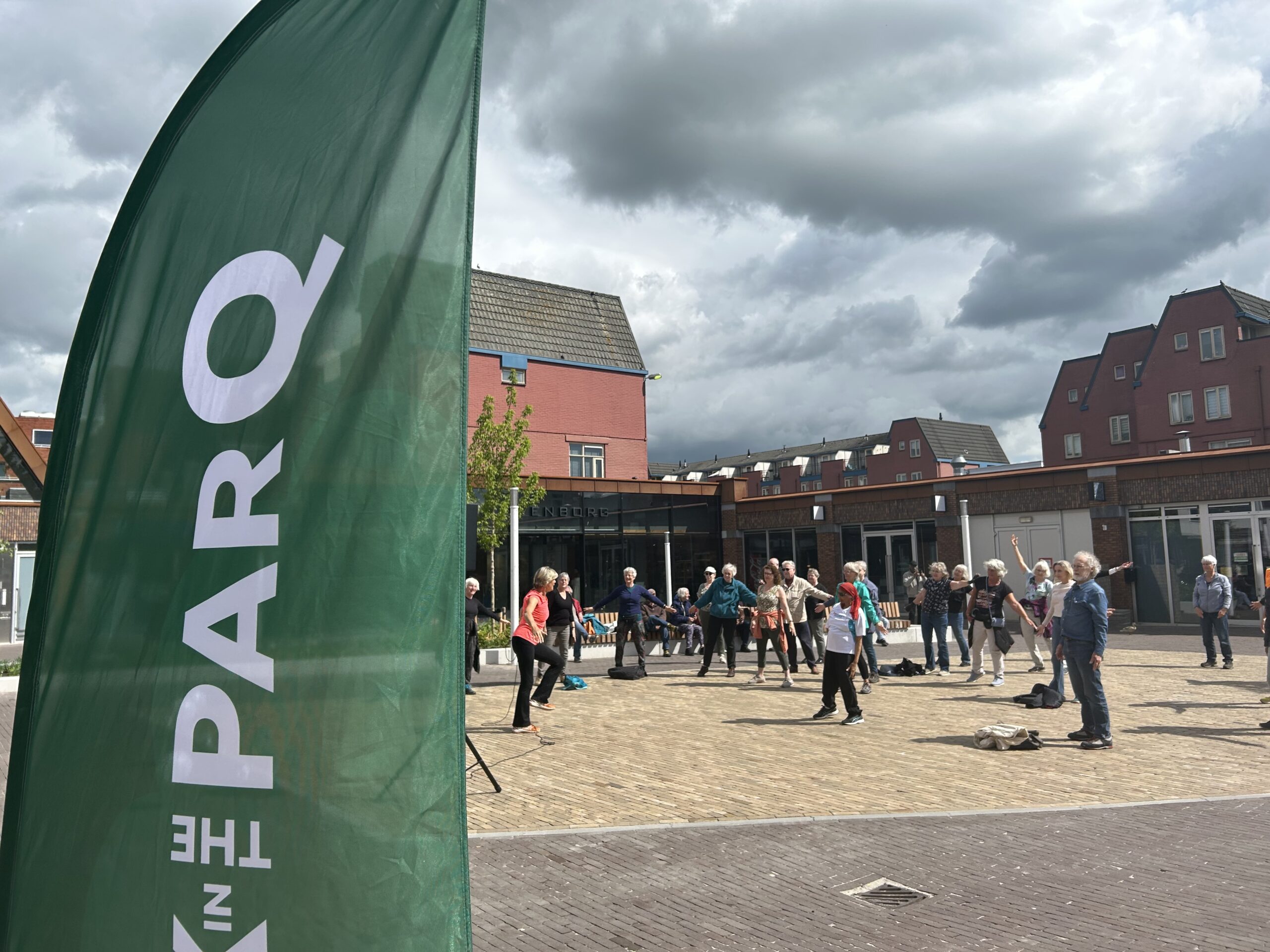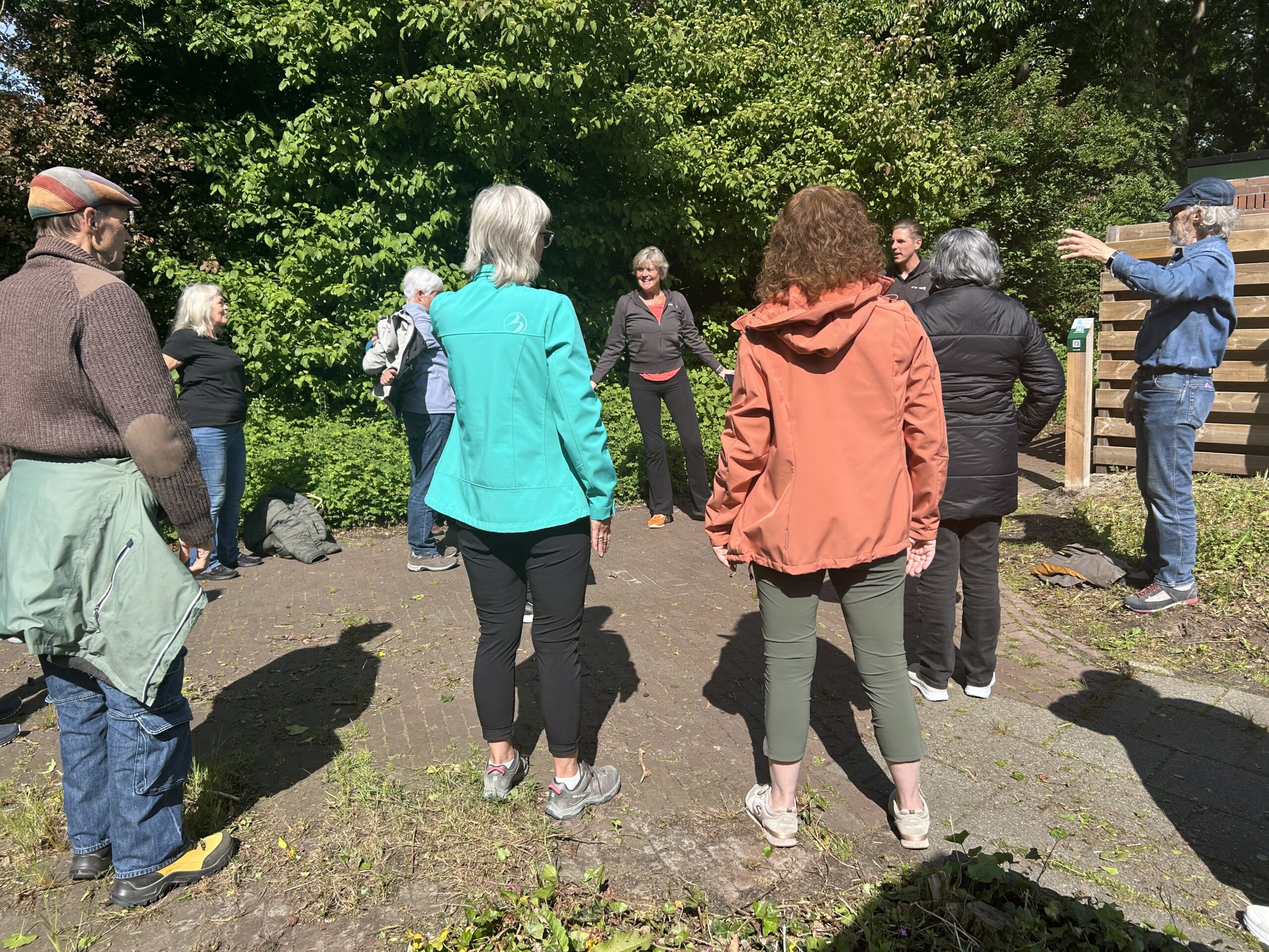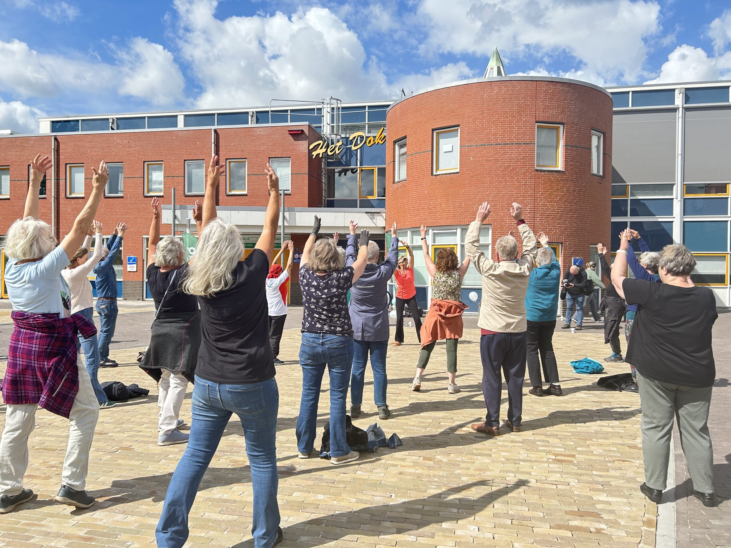 We begonnen met een actieve warming-up van Olga. Daarna liepen we in een groep naar het Le Roy-gebied toe. Rond 11 uur waren we weer terug op het winkelplein om wat rek- en strekoefeningen te doen. En natuurlijk kon je daarna een lekkere kop koffie of thee halen in het Dok.