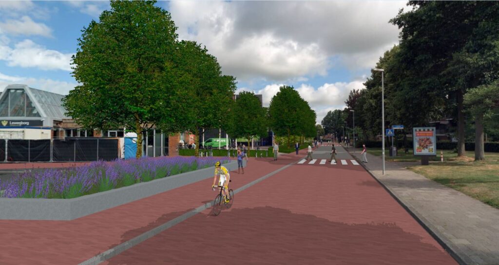 De lijzijde ten hoogte van het winkelcentrum wordt verbeterd. Nu is de situatie chaotisch. Fietsers, voetgangers, auto’s, bussen en vrachtverkeer komen elkaar op allerlei manieren tegen. En dat met een maximaal toegestane snelheid van 50 km/uur. We willen al het verkeer beter verdelen en de snelheid omlaag brengen naar 30 km/uur, zodat het voor iedereen veiliger wordt. Zo komt er ook meer plek voor groen en zitplekken. Op gemeente.groningen.nl/herinrichting-lijzijde kan je nalezen hoe het er straks uit komt te zien.